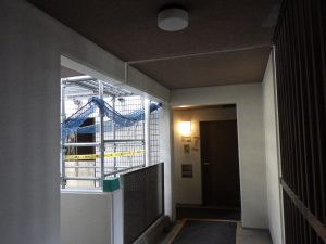 ●廊下(補修、シーリング打替え、外壁塗装、鉄部塗装、側溝ウレタン防水、オブジョ)