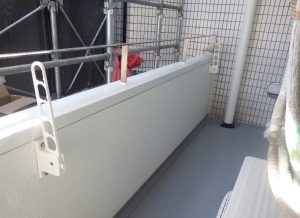 ●バルコニー(補修、シーリング打替え、外壁塗装、鉄部塗装、側溝ウレタン防水、手摺天端ウレタン防水)