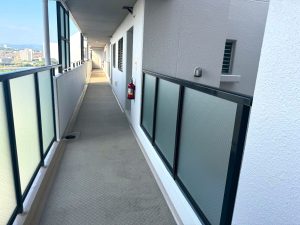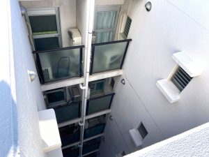 外部階段につきましては、上り下りの利便性および安全性を考慮し、階段中央部に手摺を新たに設置いたしました。