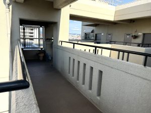 ■廊下全景(補修、シーリング打替え、外壁塗装、鉄部塗装、側溝ウレタン防水、端末シーリング増打ち)